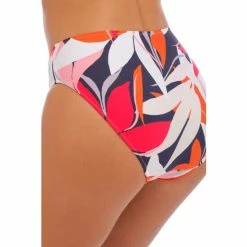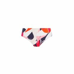 Almeria features a shadow palm print in white and citrus tones on a navy ground and crafted from a sustainable choice fabric- Reco Nylon by Nurel. The Mid Rise Bikini Brief offers medium coverage. Fully lined. Made from 84% Nylon/Polyamide – 16% Elastane.