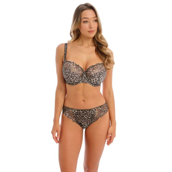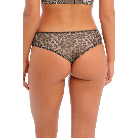 Antonia offers a tonal denim blue leopard print with Swiss-designed overprint embroidery. The all over print Brief has a delicate bow detail at centre front. Made from 75% Polyester – 14% Nylon/Polyamide – 11% Elastane.