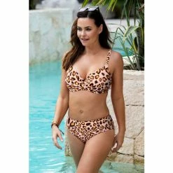 Kabini Oasis offers a leopard print look, with golden yellow and deep brown spots on a soft pink ground. The Mid Rise Bikini Brief offers medium coverage. Fully lined.