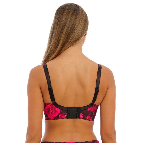Designed in-house and exclusive to Fantasie, Lucia features a romantic floral print. The Underwire Bra has a three piece cup with side support for great uplift and forward projection. Wide wired and lined top cup for additional comfort and support. Delicate black lace adorns the top cup. Printed powernet wing for anchorage and support. Fully adjustable soft peach skin shoulder straps. Delicate bow detail with rose gold charm at the centre front. Made from 69% Polyester – 16% Elastane – 15% Nylon/Polyamide.