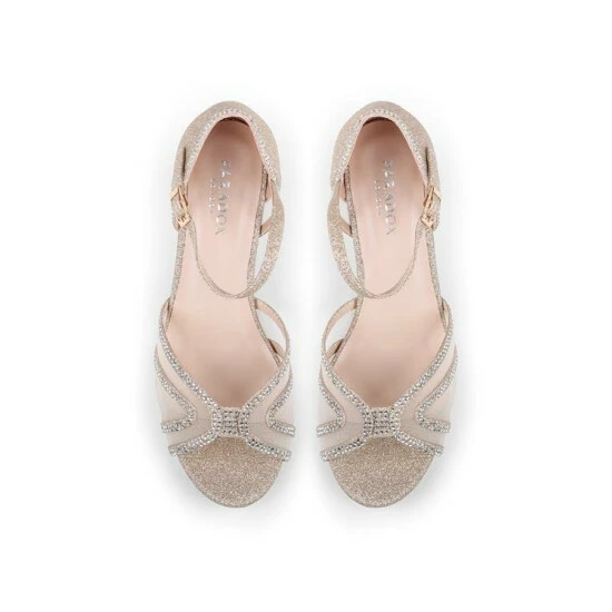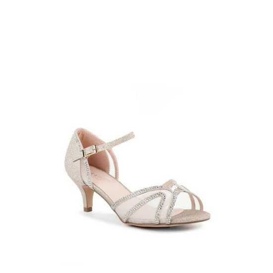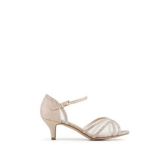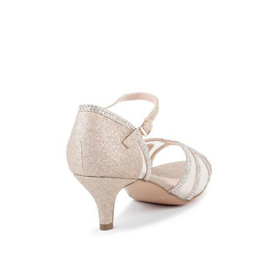 Brand new 🔥 Paradox London Shimmer 'Maike' Mid Block Heel Ankle Strap 🩴 Sandal For Female 💯