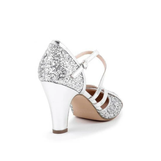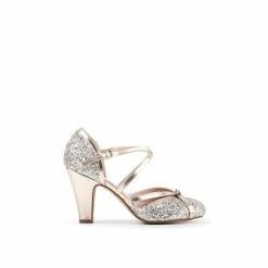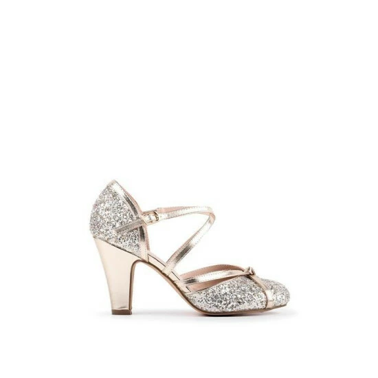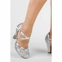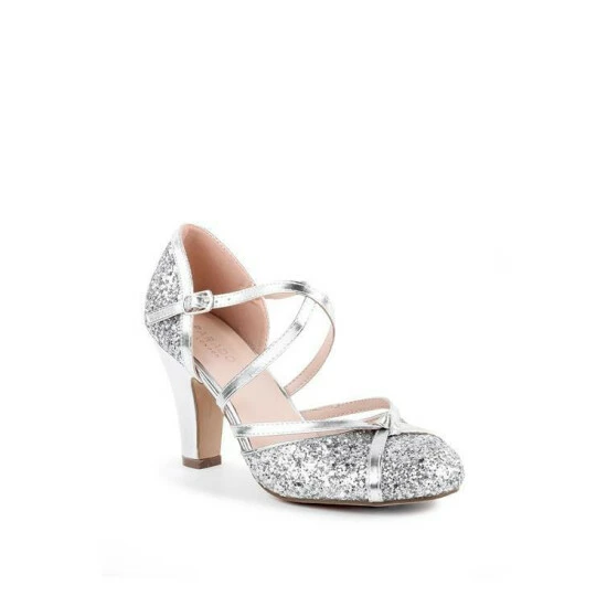 Flash Sale ✨ Paradox London Shimmer 'Finley' Wide Fit Low Block Heel Court 👟 Shoes For Female ⭐