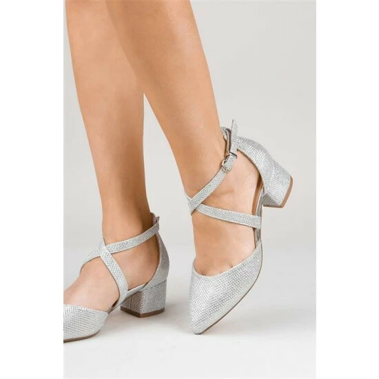 Flash Sale ✨ Paradox London Shimmer 'Finley' Wide Fit Low Block Heel Court 👟 Shoes For Female ⭐