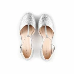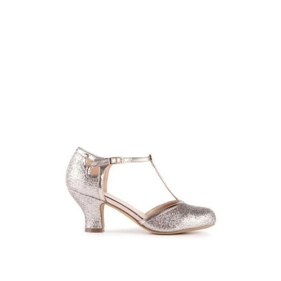 Flash Sale ✨ Paradox London Shimmer 'Finley' Wide Fit Low Block Heel Court 👟 Shoes For Female ⭐