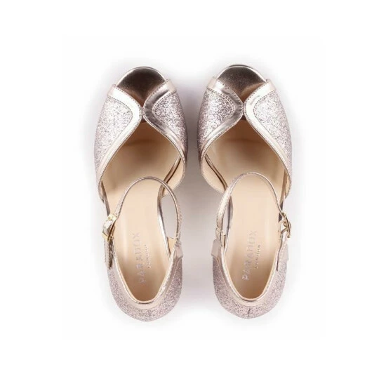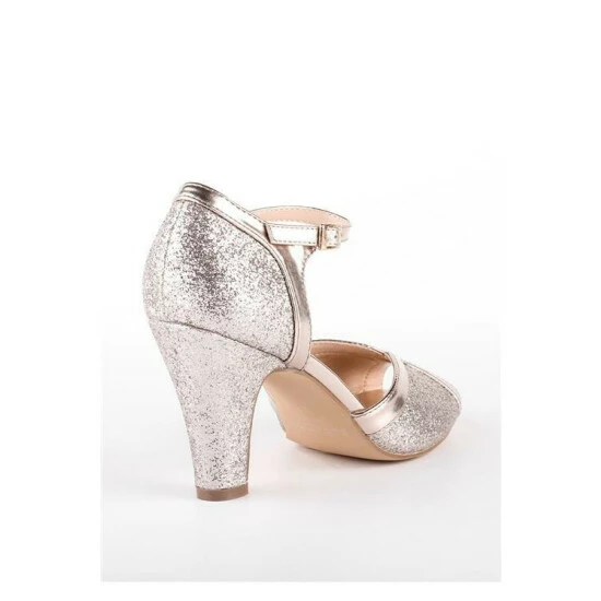 Upper: Glitter. Lining: Synthetic. Sole: Resin. Care options: Use specialist cleaner