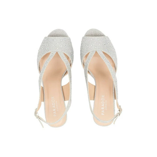 Brand new 🔥 Paradox London Shimmer 'Maike' Mid Block Heel Ankle Strap 🩴 Sandal For Female 💯