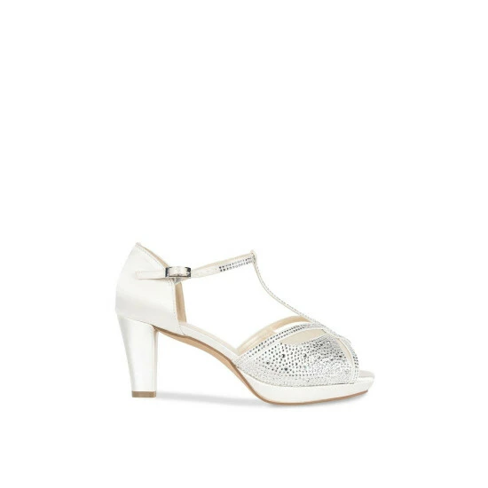 Discount 🥰 Paradox London Satin 'Kyrie' High Block Heel Ankle Strap Peep Toe 🩴 Sandals For Female 🤩