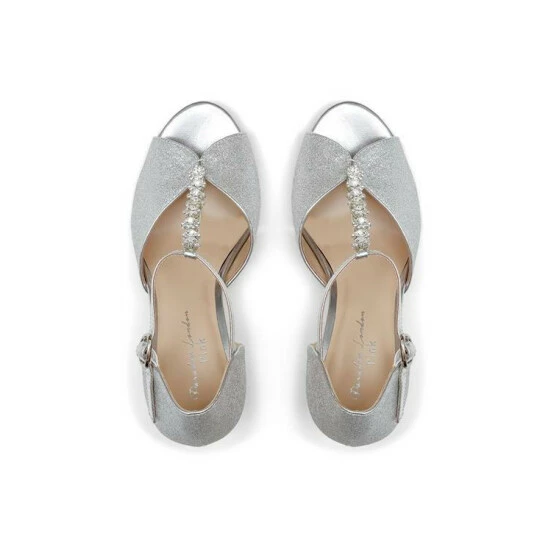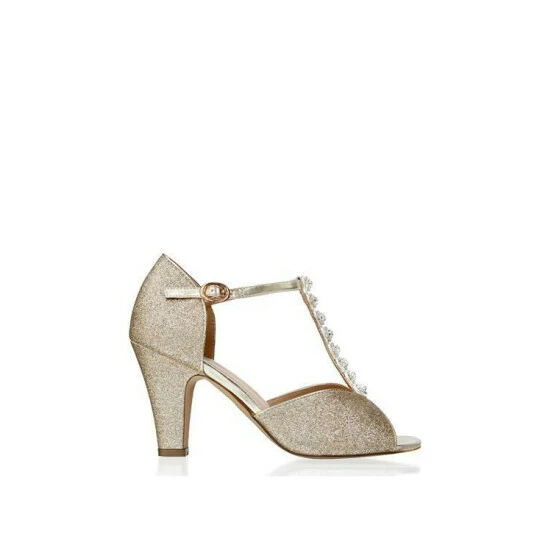 Brand new 🔥 Paradox London Shimmer 'Maike' Mid Block Heel Ankle Strap 🩴 Sandal For Female 💯