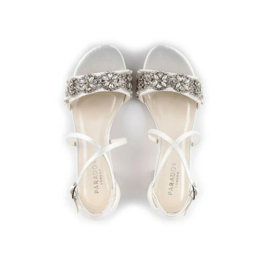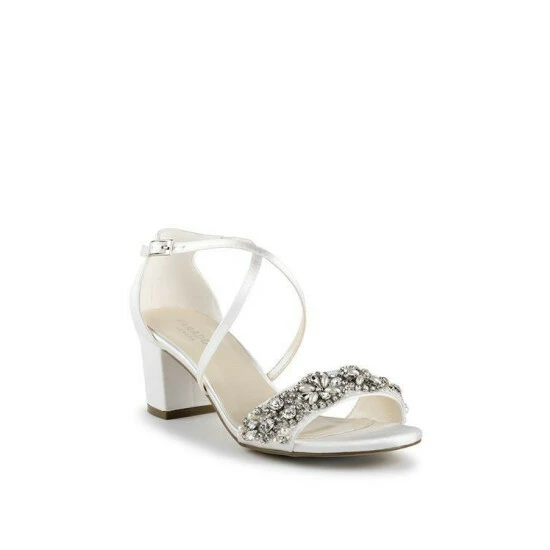 Discount 🥰 Paradox London Satin 'Kyrie' High Block Heel Ankle Strap Peep Toe 🩴 Sandals For Female 🤩