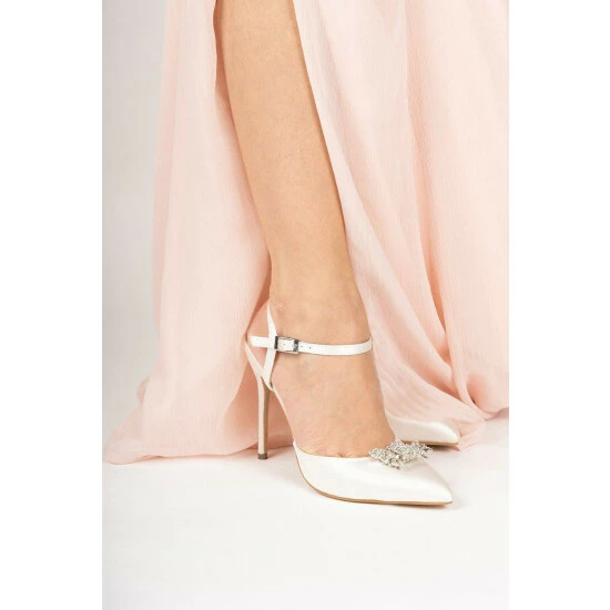 Best Pirce 😍 Paradox London Satin 'Elyse' Low Block Heel Cross Strap 🩴 Sandals For Female 😉